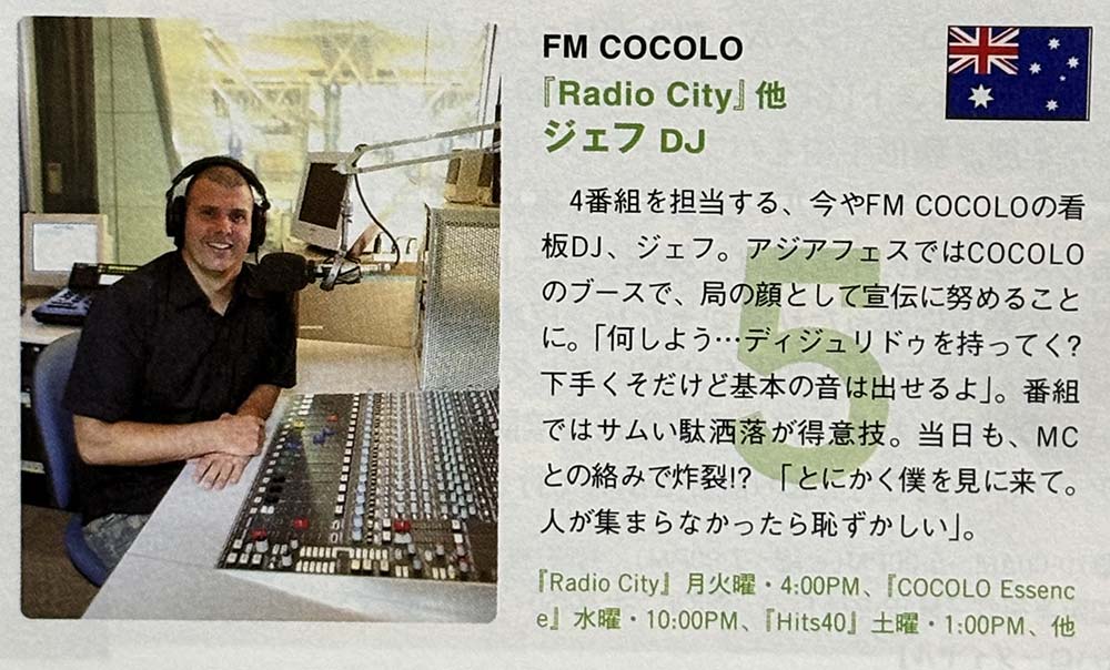 オーストラリア・ゴールドコースト出身。日本の永住権を取得。日本語・英語のバイリンガル。1992年にワーキングホリデーで初来日し、1年間関西に在住。1998年に関西のFM COCOLOにてプロラジオDJとしてデビュー。オーストラリアや日本でアーティストのインタビュー、各種イベントMC、ワンマンDJ、CMナレーションなどを担当。オーストラリアでは様々なバンドのドラマー/パーカッショニストとしても活躍。